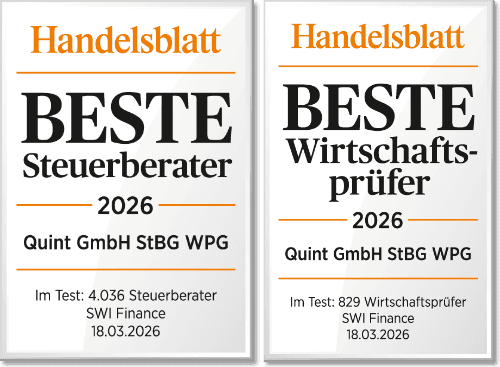 Scharbeutz, 18. März 2026 - Wie bereits im Vorjahr konnte sich die Quint GmbH StBG WPG im aktuellen Handelsblatt-Ranking als „Beste Steuerberatung 2026“ sowie als „Beste Wirtschaftsprüfung 2026“ platzieren.